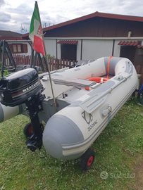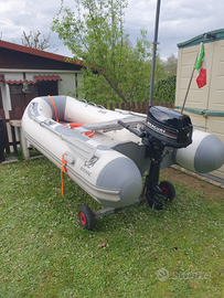 Vendo in ottimo stato con motore Mercury 6 Hp antifurto motore con chiave, ruote di alaggio ribaltabili porta bandiera, 3 salvagente regolamentari, razzi comperato questo anno, catena, 2 ancore e cordame, rullo di alaggio, portacanna, panca originale, bauletto a tenuta.