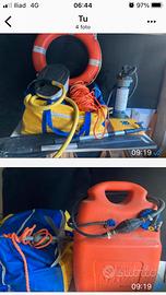 Gommone zodiak con pagliolato ad aria, lungo 3,5 m, porta 5 adulti e 3 bambini; con motore da 15 cv il tutto non più utilizzato dallo scorso anno dopo aver fatto regolare manutenzione. Compreso ruote alaggio, serbatoio, remi, dotazioni di sicurezza, panchetta, 1 gonfiatore a 12v e 1 a pedale, 1 manuale e altro che non ricordo. Il gommone rimane rimessato sempre gonfio.