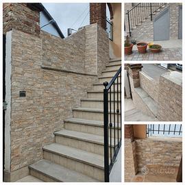 Aree esterne e cortili: pavimentazioni esterne, muretti e recinzioni, posa pietra di luserna, posa autobloccanti, e altri lavori edili.