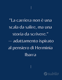 Il Career Coaching è uno spazio di confronto e allenamento: ti aiuta a fare ordine, capire cosa vuoi e muoverti con più continuità e serenità.