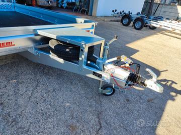 Rimorchio Trasporto Macchine Operatrici, Miniescavatore completo di Rampe posteriori verticali, con portata complessiva di 2700 kg