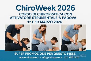 I corsi si terranno rispettivamente a Padova dal 9 al 11 Marzo 2026 per la chiropratica Thompson e dal 12 al 13 Marzo 2026 per la chiropratica strumentale con attivatore.