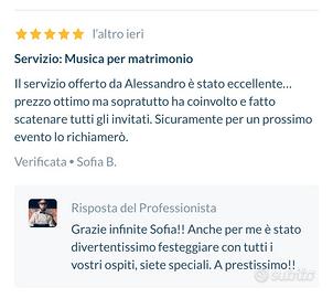 DJ set ed intrattenimento a partire da 80 euro. Eventi pubblici e privati a Roma e nel resto della regione, matrimoni, diciottesimi, 50 anni, compleanni, lauree, anniversari, addii al nubilato/celibato, aperitivi, feste in piscina/spiaggia/barca/chalet.