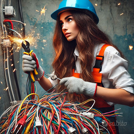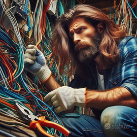 Si esegue qualsiasi lavoro: dal singolo punto luce, alla realizzazione dell'intero impianto elettrico con domotica. Inoltre si realizzano impianti di allarme, videosorveglianza, cablaggio e configurazione di reti telecomunicazioni per computer (networking).