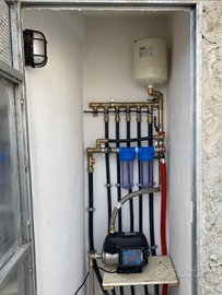 Impianti idrici domestici, rubinetteria, scarichi, serbatoi e autoclavi, scaldacqua, spurgo termosifoni, assistenza tecnica, irrigazione, pulizia serbatoi acqua, impianti pressurizzati, riparazione perdite di ogni genere, realizzazioni soluzioni idriche domestiche, sostituzione raccorderia e pompe, presscontrol, manutenzioni generali e specifiche.
