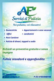**AF Servizi di Pulizia** è un'impresa con sede a Castelverde (CR), specializzata in servizi di pulizia civile e commerciale. Operiamo con serietà, puntualità e massima attenzione ai dettagli, offrendo soluzioni personalizzate per ogni esigenza. Ci occupiamo di pulizie generali di appartamenti, abitazioni private e case vacanze, garantendo ambienti igienizzati, ordinati e accoglienti. Offriamo inoltre servizi dedicati per uffici e spazi professionali, assicurando standard elevati di pulizia e sanificazione. Siamo specializzati anche in pulizie post-ristrutturazione, con interventi accurati per la rimozione di polvere, residui e sporco da cantiere. Tra i servizi specifici proponiamo lavaggio professionale di tappeti, divani e sedie, inclusi trattamenti di lavaggio a secco per tessuti delicati. AF Servizi di Pulizia rappresenta la scelta ideale per chi cerca affidabilità, qualità e risultati impeccabili a Castelverde e dintorni.
