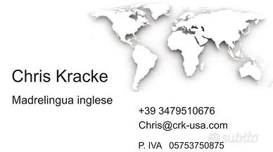 Sono madrelingua inglese, nato e cresciuto nello stato di New York, Stati Uniti. Ho un background in business a New York City, e sono un insegnante di inglese e tradutore per studenti italiani da oltre 8 anni. Possibilità di lezioni in modalità online da lunedì a venerdì.