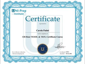 Mi chiamo Carola e sono un'insegnante di inglese certificata TEFL/TESOL con esperienza.