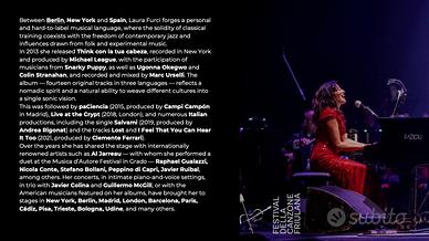 -> Canto moderno · Tecnica vocale · Pianoforte · Teoria musicale Lezioni personalizzate per tutti i livelli, dai principianti ai professionisti. Online- Approccio moderno, umano e completo -- per chi desidera migliorare la propria voce, approfondire la tecnica pianistica o prepararsi a esami di Conservatorio. Corsi disponibili: -> Canto moderno e tecnica vocale - anche per principianti -> Vocal coaching per cantanti - sviluppo dell'espressività e preparazione live -> Pianoforte classico e moderno - tutti i livelli -> Teoria musicale e solfeggio parlato e cantato - applicabile a tutti gli strumenti -> Supporto e tecniche di studio pianistico per la preparazione in Conservatorio -> Breve profilo: Diploma Superiore in Pianoforte (massimo dei voti) - Conservatorio "G. Tartini" di Trieste -Diploma di Abilitazione all'Insegnamento, Università di Siviglia -Laurea in Scienze Politiche Internazionali - Università di Trieste / Universidad Complutense di Madrid -Primo premio al Concorso Pianistico Nazionale "Città del Barocco" (Lecce) -Corsi di musica da camera all'Accademia di Salvatore Accardo (Cremona) -Ha perfezionato la propria formazione tra New York, Londra e Madrid, studiando con docenti di fama internazionale (Bruce Barth, Jacob Sacks, Jeanette Lovetri, Tony Heimer, tra gli altri). -A Cádiz ha approfondito il Flamenco applicato alla musica moderna con J.Lavilla, collaborando poi nel tour del cantautore Javier Ruibal. ->Con oltre 20 anni di esperienza internazionale nell'insegnamento, Laura ha aiutato numerosi studenti di Conservatorio nella preparazione di esami di Teoria, Solfeggio e Pianoforte, e ha insegnato pianoforte e canto moderno presso la Scuola di Musica di San Fernando (Cádiz). Le lezioni possono essere impartite in italiano, spagnolo o inglese. Parallelamente all'attività didattica, Laura porta avanti una ricca carriera concertistica internazionale (Italia,, Spagna, New York, Berlino, ecc) e propone anche la preparazione emotiva e psicologica al live..