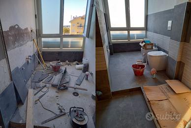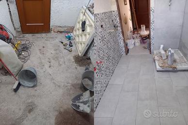 Esegue lavori di ristrutturazione appartamenti completi, pavimenti, rivestimenti, bagni, cucine, terrazzi, balconi, cartongesso, rasature, guaina per impermeabilizzazione, gessatura, pittura.