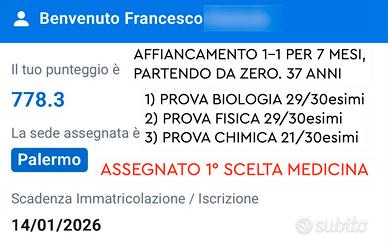 Difficoltà in chimica, fisica o biologia? Ti aiuto a superarle definitivamente:) Sono un laureando in Medicina e Chirurgia con una solida formazione scientifica alle spalle e oltre 8 anni di esperienza nell'insegnamento. Dal 2017 ad oggi, ho aiutato più di 120 studenti a migliorare il proprio rendimento scolastico, con risultati concreti e verificabili. Impartisco lezioni private ONLINE a studenti di scuole superiori (con esperienza anche universitaria) di: - Chimica generale ed inorganica. - Chimica organica. - Fisica. - Biologia. - Preparazione Test d'ingresso Medicina/Professioni Sanitarie Per rendere la lezione scorrevole ed interattiva verrà utilizzata una tavoletta grafica. Al termine della lezione riceverai il PDF con gli appunti presi durante la stessa. Inoltre fornirò quiz e simulazioni di verifica personalizzati al fine di consolidare le conoscenze acquisite e testare i progressi. Il metodo d'insegnamento si basa sull'identificare i problemi alla radice, analizzando (se necessario) frase per frase assicurandomi che l'alunno/a abbia veramente capito il concetto studiato; colmando in maniera definitiva la lacuna trattata. Il mio obbiettivo è rendere autonomo lo studente/ssa fornendogli tutti gli strumenti necessari per poter proseguire da solo/a il proprio percorso formativo. Compenso: 30euro/h. Verrà emessa una regolare fattura, essendo in possesso di ordinaria p.IVA. Prenota la tua prima lezione GRATUITA: analizzeremo insieme le tue esigenze e creeremo un percorso di apprendimento su misura per te. Ti aspetto! Cordiali saluti, Mauro