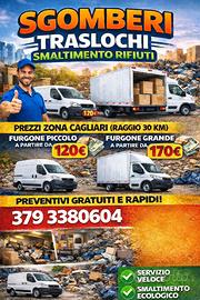 SGOMBERO E TRASLOCHI PROFESSIONALI - SMALTIMENTO RIFIUTI AUTORIZZATO Eseguiamo sgomberi completi di appartamenti, cantine, garage, soffitte, negozi e uffici, con interventi rapidi e organizzati. Offriamo inoltre servizi di trasloco e trasporto su breve e lunga distanza, garantendo cura, precisione e massima sicurezza in ogni fase del lavoro. Ci occupiamo direttamente dello smaltimento di rifiuti e materiali ingombranti nel pieno rispetto delle normative vigenti. Siamo un'azienda sarda con Partita IVA e regolare autorizzazione per il conferimento dei rifiuti presso discariche autorizzate (non operiamo tramite isole ecologiche o ecocentri). Servizi inclusi: Sgombero totale e parziale Traslochi privati e commerciali Trasporto mobili e materiali Smaltimento certificato rifiuti Servizio serio, veloce ed economico. Sopralluogo gratuito con preventivo chiaro e senza impegno. Affidabilità, puntualità e trasparenza garantite. Contatti: Telefono: 379 3380604