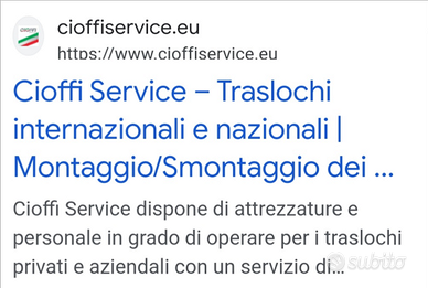 La Cioffi Service da oltre vent'anni opera con successo nel settore dei traslochi, offrendo ai propri clienti un servizio personalizzato per ogni esigenza di trasloco nazionale e internazionale (compreso la Svizzera con pratiche doganali).