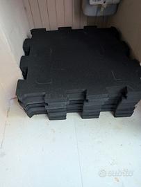 Vendo dodici tappetini di pavimento anti trauma in gomma a incastro per palestra o pesistica. Ogni tappetino misura 40x40 centimetri con spessore di 2 centimetri. Il materiale è in ottime condizioni e lo cedo per inutilizzo (anche con panca e manubri regolabili). Ritiro a mano a Milano e zone limitrofe.