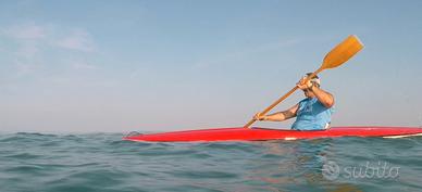 2 Canoe (rossa e gialla) in vetroresina. Vengono fornita complete di puntapiedi, e pinna posteriore stabilizzatrice e rimovibile. Senza pagaia. Perfette per lago. 70€ ciascuna o 120€ entrambe. Lunghezza 385cm. Hanno maniglia ci corda anteriore e posteriore che facilita il trasporto.