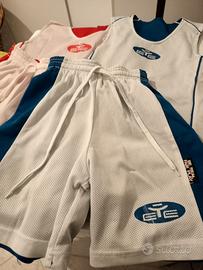 2 completi da basket bimbi,taglie 6/8 anni.Marca EYE Sport.Uno rosso e bianco, l'altro azzurro e bianco.Entrambi in tessuto tecnico traforato e double face.Consegna a mano,solo Olbia.