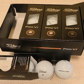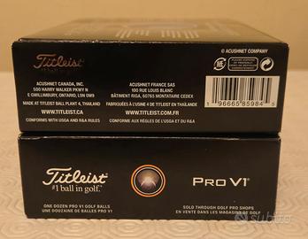 2 confezioni di 12 palline da golf Marchio Titleist Modello Pro V1 Ogni confezione contiene 4 scatole con 3 palline, 12 palline da golf per confezione Totale 24 palline da golf (Le palline non si vendono singolarmente) Offrono un controllo "Drop-and-Stop" per il gioco corto. Progettate per un volo costante e una traiettoria penetrante.Presentano una sensazione molto morbida e un basso spin nel gioco lungo. Sono tra le palline da golf più utilizzate nei campi internazionali. Queste palline sono progettate per offrire prestazioni premium a giocatori di tutti i livelli, con caratteristiche tecniche specifiche per ottimizzare il gioco: Volo e Controllo: Offrono una traiettoria di volo media e penetrante, con uno spin molto basso nel gioco lungo per massimizzare la distanza, ma un elevato spin nel gioco corto per un controllo preciso intorno al green. Costruzione: Presentano un nucleo a gradiente più morbido per una sensazione di tocco più soffice e una copertura in elastomero uretanico termoindurito che migliora la durata e il controllo. Design Aerodinamico: Utilizzano un design a 388 fossette tetraedriche per un volo costante e prevedibile Confezioni palline Nuove, mai usate Vendo per doppio regalo Vendute online e nei negozi a 55€ ciascuna confezione da 12 palline Io le vendo a 20€ ciascuna confezione da 12 palle 40€ le 2 confezioni assieme Dimensioni ciascuna confezione 19x13 cm Scatola di 3 palline 13x4cm In regalo un sacchetto di 15 Bamboo Tees "oversize" bianchi in plastica, lunghi 83mm.