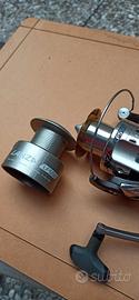 Due mulinelli nuovi. Il primo marca Lineaeffe LFS50 Vigor SX. Capienza bobina 180mt. con filo del 0,35 e 100mt. con filo dello 0,50,Materiale graffite. Rapporto di recupero 5,2:1. Manovella ambi destro. Il secondo mulinello è un Noshima mod. Lanza LFS50 Capienza bobina come l'altro. Rapporto di recupero 5,1:1, con 9 cuscinetti. questo ha anche una seconda bobina di scorta della stessa capienza.