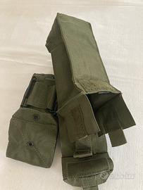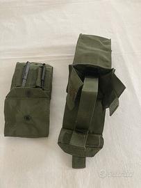 Due portacaricatori, nuovi. Mai utilizzati. Perfetti, con comodi ganci in metallo per agganciarli a cintura o cinturone.