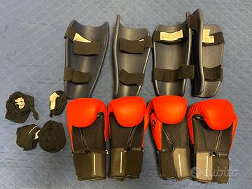 Vendo attrezzatura completa per sport da combattimento Outshock (Decathlon), ideale per principianti. Dispongo di DUE set completi e identici, usati per sole 5 lezioni. Nessun segno di usura, velcri perfetti, interni igienizzati.