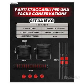 Vendo come da foto 2 set di pesi per home fitness, manubri e manici per Kettlebell