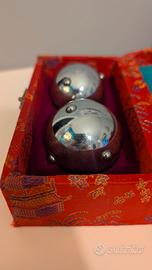 2 Sfere di ferro Baoding in metallo + spiegazioni italiano/inglese e lingua originale cinese