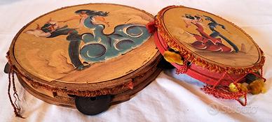 2 tamburelli da parete in legno e pelle – Flamenco – Spagna – Meta’ del 1900