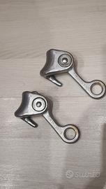 2 bloccanti da arrampicata tedesco d'epoca Salewa Hiebler Steigklemme. Realizzato nella Germania Ovest degli anni '70. Bloccante da arrampicata molto raro. Un'ottima esposizione per la tua collezione di attrezzatura d'epoca. RefZM. Spedisco