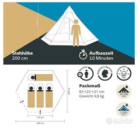 Vendo coppia tende come descritto sopra di cui una utilizzata conque giorni l’altra comprata nuova mai aperta perché sufficente una sola per l’utilizzo fatto nella vacanza. Due tende nuove al prezzo di una