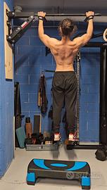 sbarra per trazioni da esterno, ripiegabile ad aggancio unico e salvaspazio.
