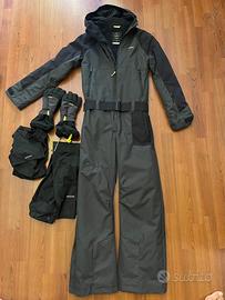 - tuta 14 anni grigio antracite, versatile adatta dai 12 ai 14 anni; usata e ben tenuta. Inclusi guanti lunghi abbinati e abbigliamento termico (maglia e pants). Scarponcino 39