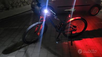 2 fari anteriori (ciascun faro a sua volta con due fari indipendenti, 4 fari a LED T6 anteriori in totale) possono essere usati insieme per la massima visibilità anche passiva e sicurezza, oppure in caso di escursioni lunghe, una può essere facilmente trasportata grazie a peso contenuto e dimensioni compatte per avere una luce di riserva sempre carica, o utilizzati per due bici.