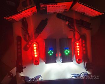 Doppio Set 4 fari MTB BMX, scooter elettrici da citta, monopattini, EBike- set sicurezza outdoor jogging Trekking ; 2 anteriori + 2 posteriori