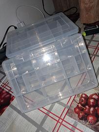 4 scatole Caperlan con divisori per attrezzatura da pesca.