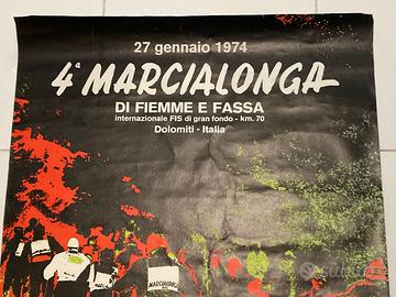Raro manifesto originale, sci da fondo, anno 1974, 4a MARCIALONGA DI FIEMME E DI FASSA , quarta edizione, dimensioni 50x40 cm.