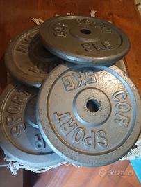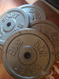 4 dischi da bilancere di 5kl cadauno con foro cm2,5 c.ca.