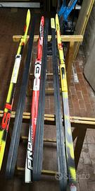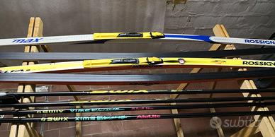 Tutto a € 150,00: N° 5 paia Sci fondo skating con attacchi, N° 3paia racchette e N° 3 paia scarponi con sacche traporto e borsa kit sciolinatura. Materiale in ottimo stato e reso a Bologna