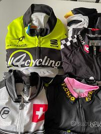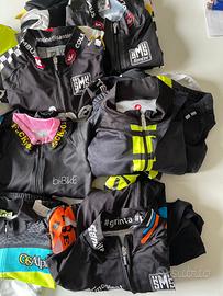 5 tutine complete di bib e maglia taglia M di uno c'è anche il gilet antivento. Usate una volta.
