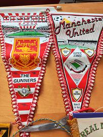 Otto gagliardetti calcistici risalenti agli anni Ottanta. Le squadre sono: Real Madrid, Barcellona, Penarol, Ajax, Fluminense, Everton, Arsenal, Manchester United. Ideale per appassionati o rivenditori. Alcuni gagliardetti hanno delle pieghe (uno, la data a il luogo dell'acquisto scritto dietro), ma la condizioni generali sono buone.