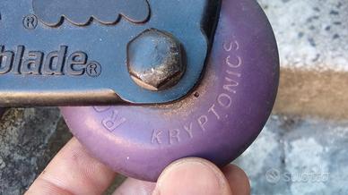Per pattini inline, vendo 8 Ruote 70mm Kryptoniks Rollerblade Lightning 1998. Mescola poliuretanica di altissima qualità Kryptos che non degrada nel tempo infatti hanno un rimbalzo eccezionale e misurano sempre 84A al durometro. Diametro 70x24 mm