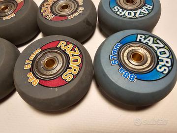 Vendo otto ruote della Razors per pattinaggio Aggressive diametro 57mm Quattro ruote esterne di durezza 88a Quattro ruote interne di durezza 92a cuscinetti inclusi!