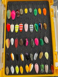 VENDO LOTTO DI 84 SPOON A 200€, DA AGGIUNGERE SPEDIZIONE. MENO DI 2,50€ A PEZZO. COMPRESA MEIHO 3010 W2. PREZZO NOM TRATTABILE. Ottime per canne o canna Shimano Daiwa Favorite Herakles Rodio Craft Rodiocraft Molix Megabass Yarie Evergreen Tailwalk Zenaq Forest Tubertini Trabucco Colmic Jackall Seika Italica Abu Garcia MajorCraft Si adatta a spoon e crank Valkein Nories Rob Lure Neo Style Antem Dohna o Dhona New Drawer Velvet Arts Nomura Timon Daysprout Adattabile a cassette plano Meiho o Mehio plano Dream Master da pesca Trota Trout area o spinning