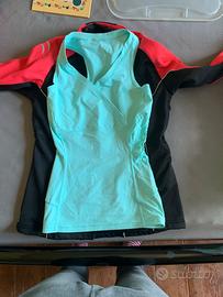 Vendo kit vestiti per bici NON DIVISIBILE, composto da soft shell autunnale, 3 maglie termiche manica lungha, 2 canottiere estive, 1 salopette autunnale, 1 pantalone a ginocchio, 1 pantalone corto e gilet alta vusibilità. Taglia M tutto acquistato al decathlon.