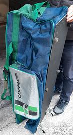Borsone per la scherma, rettangolare grande con ruote larghe, marca "Carmimari", 2 cerniere con 2 scomparti separati, di cui 1 dotato di stuoia