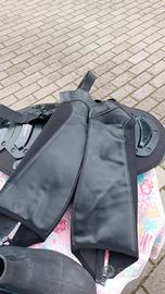 Vendo abbigliamento completo per andare a cavallo: stivaletti tagl.38 , copri stivaletti, pantalone, paraschiena, casco , completo di borsa. Prezzo 80 euro