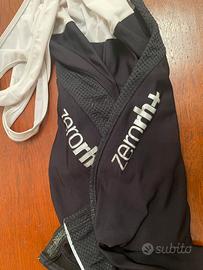 Salopette, tuta, pantaloni ciclismo Zero RH+, misura L, colore nero, interno felpato, chiusura con cerniere rifrangenti alle caviglie, poco usati, condizioni molto buone.