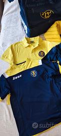 Abbigliamento sportivo, magliette, tuta, giubbotto, taglia M, e borsone con vano porta scarpe.