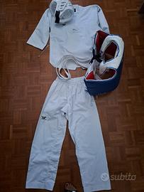 Regalo kimono bianco uomo taglia 3/170 usato pochissimo con caschetto e equipaggiamento protettivo.