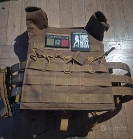 giubbotto tattico, maglia, maschera viso, cinturone e fondina da gamba
