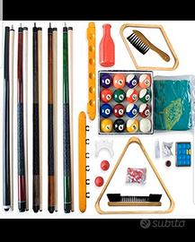 Proponiamo in vendita tutti gli accessori nuovi e ricambi per il biliardo. e manutenzione, cambio panno o trasporto e montaggio di biliardi ACCESSORI DISPONIBILE -Segnapunti elettronico favero -Centralina digitale di riscaldamento -Conta ore digitale. -Lampada da biliardo da 2 a 5 campane -Bilie nuove aramith per internazionale -Bilie nuove aramith per pool bilie boccetta -Gesso master 12pz e 144pz -Gesso diamond -Porta gesso a calamita -Porta stecche a muro o a colonnina -Stecche da sala per pool o internazionale -panno nuovo gorina diverse colorazioni -Triangolo per carambola -porta gesso con laccio -spazzole -cuoi a pressione o da incollaggio Ecc. Ecc Per ulteriori informazion o preventivi i su i nostri prodotti per biliardo, carambola, calcio balilla, bigliardino, ping pong non esitate a contattarci o visitate il nostro sito lucartecbiliardi